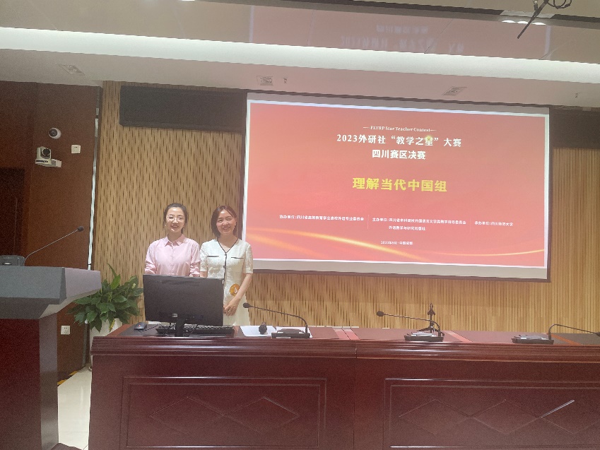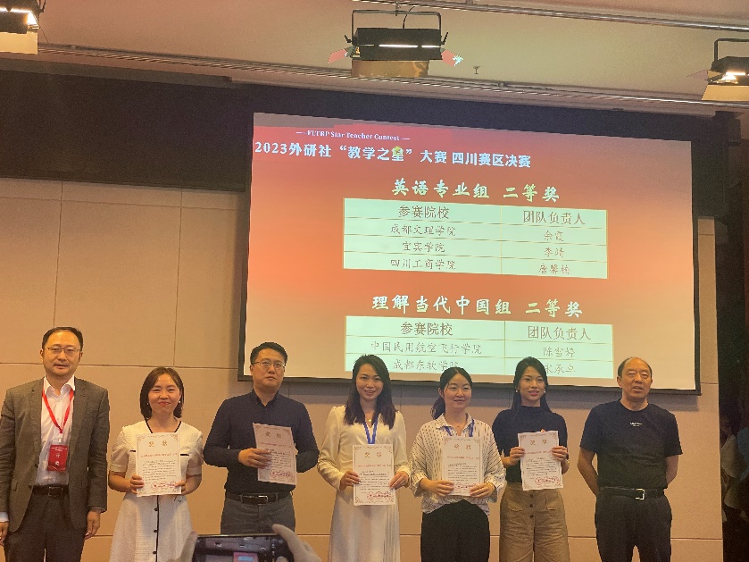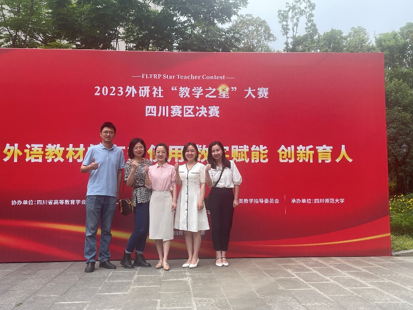 5月27日,2023年外研社“教学之星”大赛四川省决赛在四川师范大学举行,此次省级决赛一共有34支队伍参加,英语专业组、理解当代中国组18组,大学英语组16组。经过巅峰“论剑”,我校万象城allwincity官网的两支教师团队,陈雪婷老师和李清老师(团队成员:周丹强玉、邹佳静、杨睿)凭借扎实的授课功底、出色的课程设计荣获本次比赛理解当代中国组二等奖,钟璇老师、王韵老师(团队成员:庄馨)也获得了大学英语组三等奖的优异成绩。