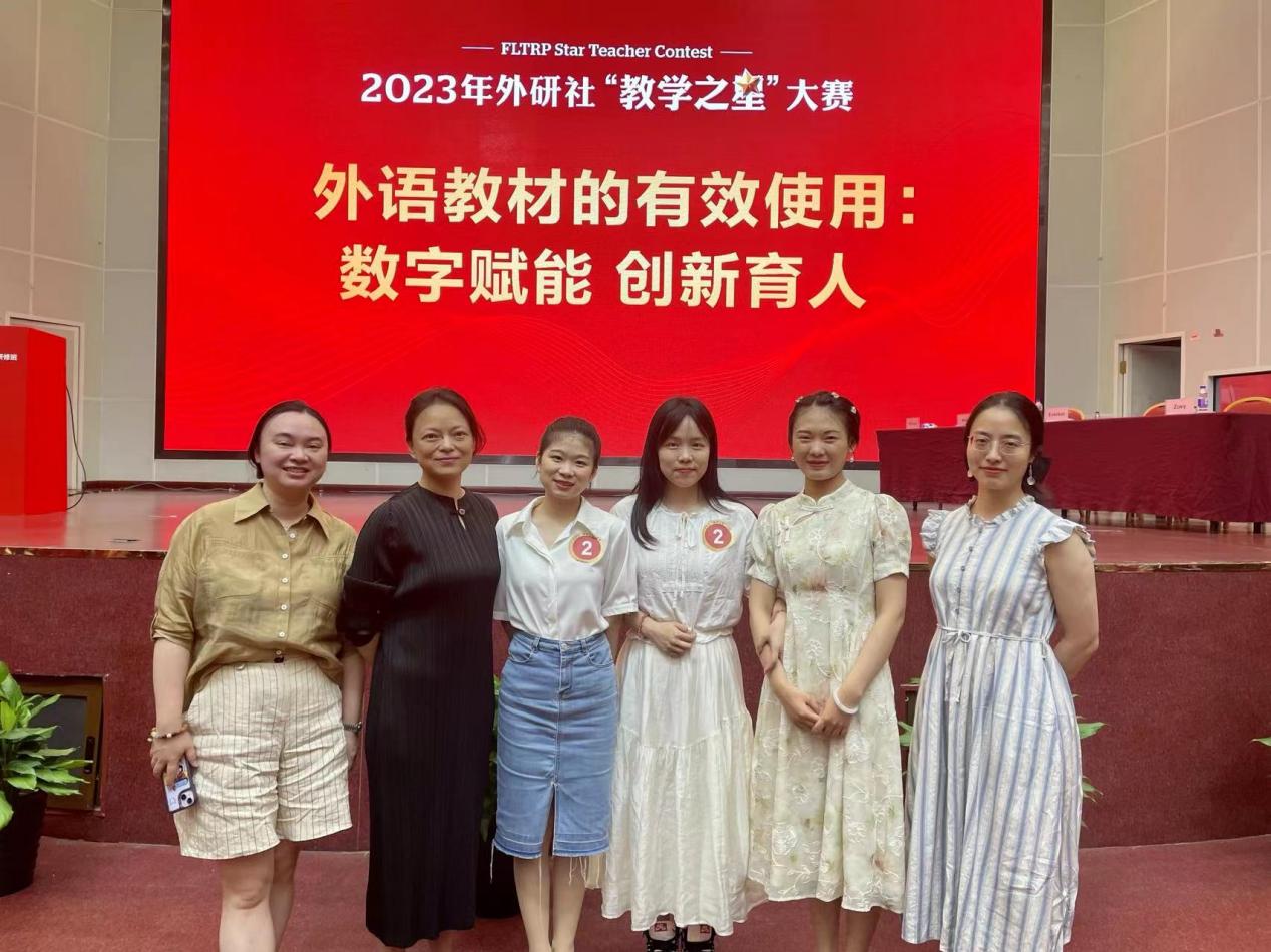 外研社“教学之星”大赛创办于2013年,在全国高校外语教学领域广受认可,连续多年被列入中国高等教育学会“高校竞赛评估与管理体系研究”《全国普通高校教师教学竞赛分析报告》中全国重点赛事数据来源。本次比赛主题为“外语教材的有效使用:数字赋能,创新育人”,比赛历时数月,初赛共有655组团队角逐全国赛晋级名额,陈雪婷老师团队和钟璇老师团队在激烈的竞争下双双获得全国复赛特等奖,晋级全国总决赛。
