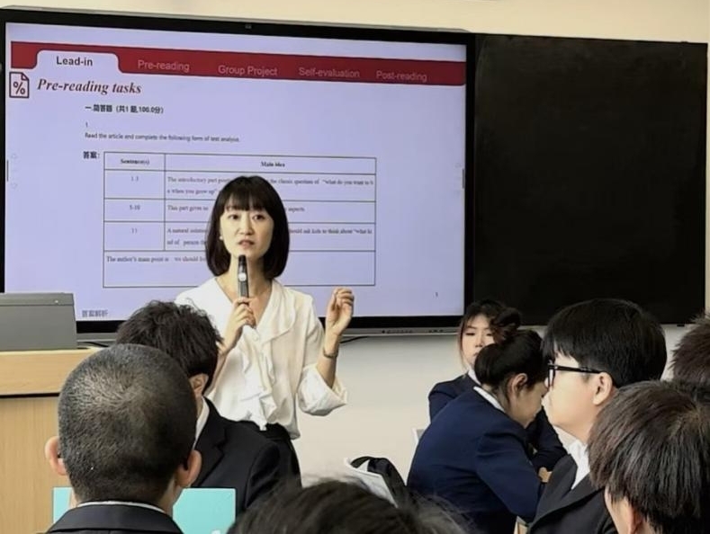万象城allwincity官网英语系彭立副教授以《综合英语3》课程为例,展示了外语教师如何利用智慧教室资源,营造思辨英语课堂。在课堂上,彭立老师熟练应用智慧教室先进设备,将AI翻译、学习通、播客等现代教学技术和手段引入课堂,创新搭建语言学习场景,深入剖析中英翻译难点和技巧,帮助学生理解机器翻译与人工翻译的异同,培养学生的思辨能力和语言表达能力。整堂课设计新颖,内容充实,气氛活跃,将大学英语课堂的“高阶性、创新性和挑战度”体现得淋漓尽致。