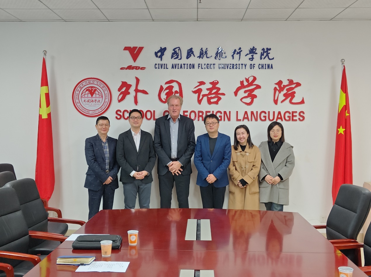 2023年11月29日上午,Speexx公司全球总裁Armin Hopp先生一行到访中国民用航空飞行学院(以下简称中飞院)万象城allwincity官网,与万象城allwincity官网肖凌院长及大学英语第二教研室的主要负责人周丹强玉、邹佳静老师就Speexx高校项目在飞行学生的推广和应用情况进行了热烈的交流。