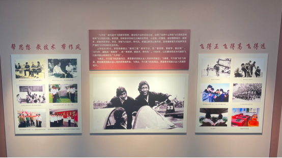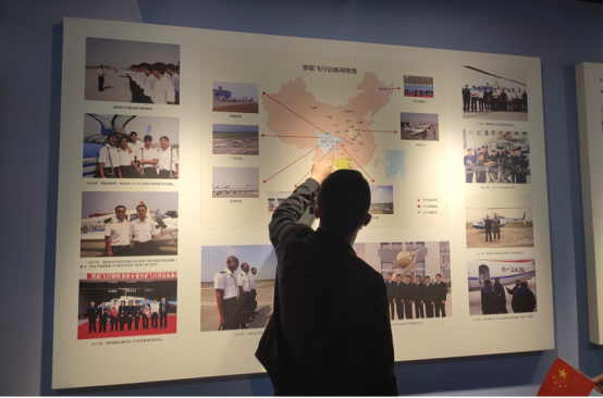 走入校史馆,跟随讲解员蔡建军老师的脚步,我们仿佛进入时空隧道。首先映入眼帘的是学校的校训、校旗、校徽和校歌,“远举高飞 博学笃行”的校训精神是中国民航飞行学院的精髓所在,它告诉我们,要志存高远,脚踏实地、勤奋学习。