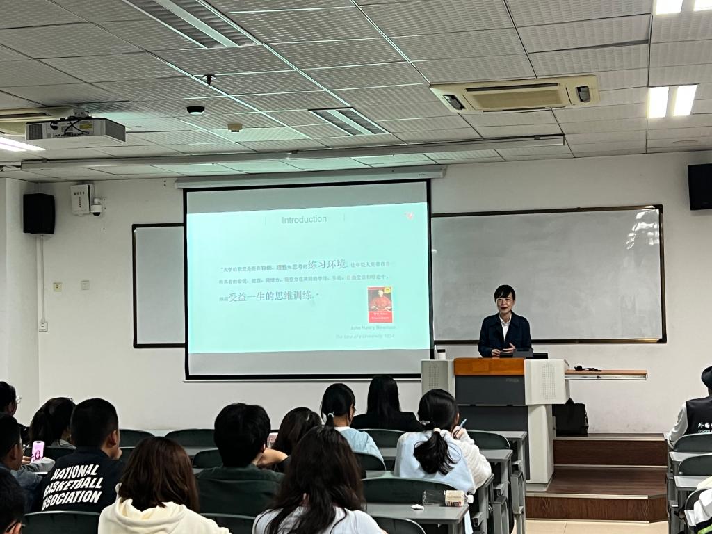 讲座伊始,殷艳老师抛出两个问题:什么是大学?什么是专业?这两个问题引发同学们热烈地思考和讨论。对于“什么是大学”,殷老师引用John Henry Newman的一句话进行解答:大学的职责是提供智能、理性和思考的练习环境,让年轻人凭借自身所具有的敏锐、坦荡、同情力、观察力在共同的学习、生活、自由交谈和辩论中,得到受益一生的思维训练。她强调,上了大学以后,人生就不再是按部就班的了,大学更为看重个人素养、自我的寻找和人的完整性。对于“什么是专业”,殷老师幽默地将专业比作“结婚”,强调了学习专业要术业专攻,并对同学们的专业学习提出要掌握专业知识、具备更大眼见和承担更大责任这三点要求。