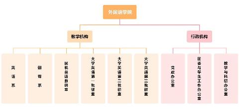 万象城allwincity官网现有英语和翻译两个本科专业,和翻译硕士专业学位(MTI)授权点。全日制在读学生600多人,其中研究生90余人。学院下设党政办公室、教学科研办公室和团委学生工作办公室三个行政管理部门,以及英语系、翻译系、大学英语第一教研室、大学英语第二教研室、大学英语第三教研室和民航英语教研室等六个教学单位。此外,学院设有MTI中心和课程思政研究中心两个专门机构,形成了较为完善的教学、科研和管理体系。